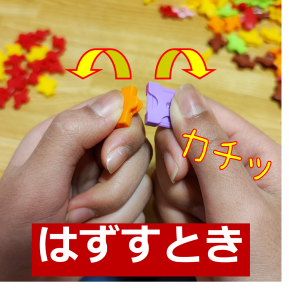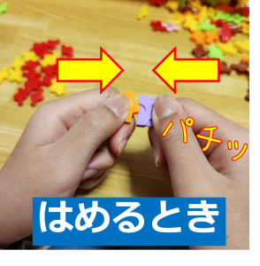 パーツをつなぐと、「パチッ」と気持ちの良い音がします。つなっがった合図です。