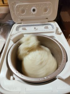 一晩お水に浸したもち米を餅つき機に