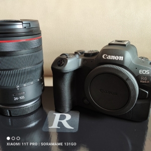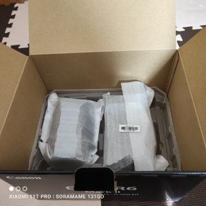 ようやく出会えました。まだ袋に入ってますが、右が本体EOS R6 Mark2、左がセットレンズRF24-105mm F4 L IS USMです。