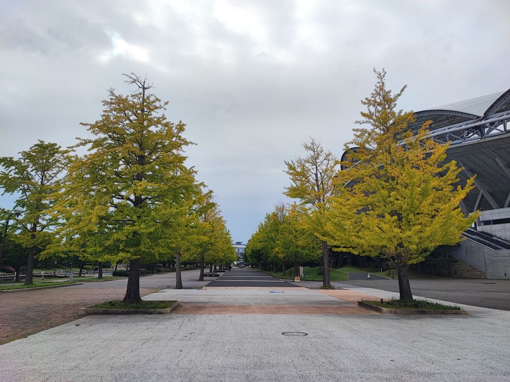 ビッグスワン脇の銀杏並木も少し黄色くなってきました